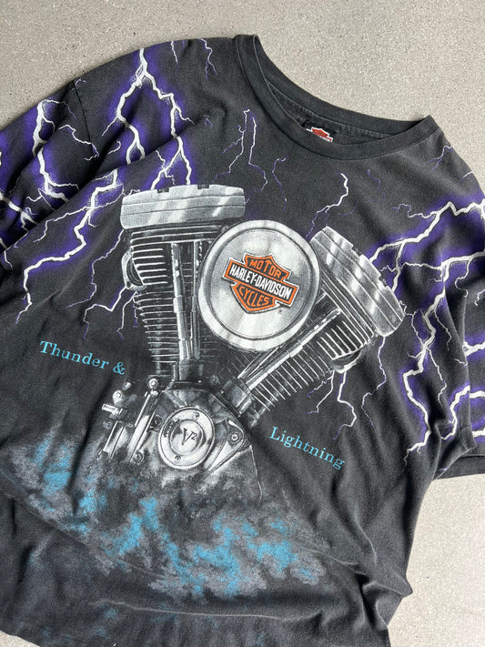 Vintage Harley Thunder and Lightning AOP Tee - XL