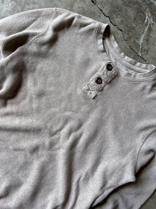 Vintage Tan Thermal Long Sleeve Shirt - L